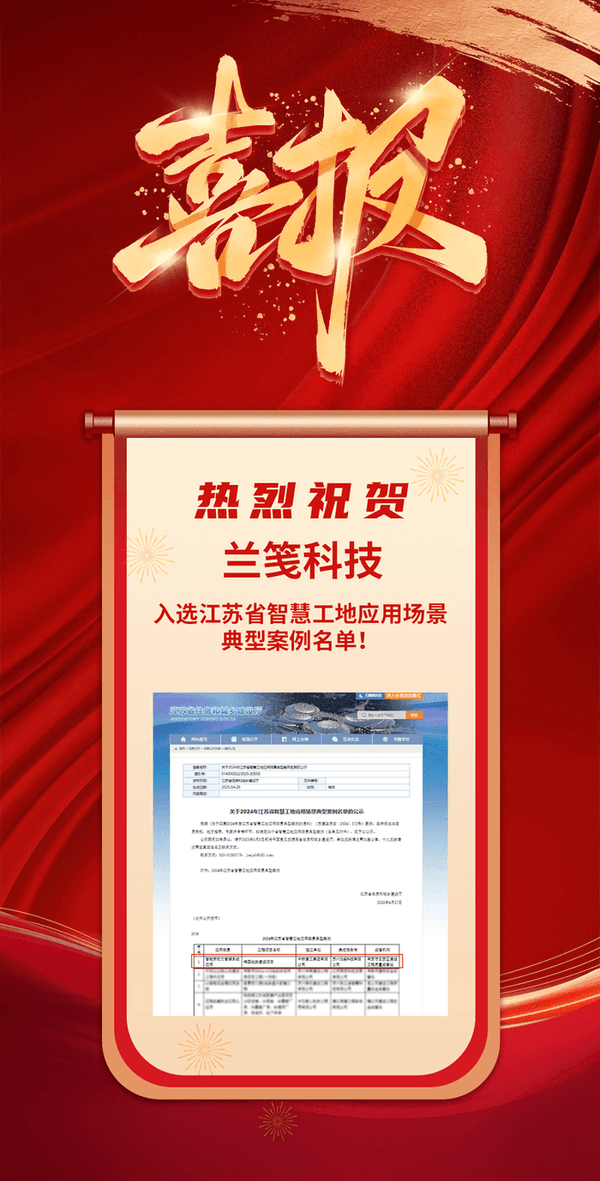 喜報!熱烈祝賀蘭箋科技入選江蘇省智慧工地應(yīng)用場景典型案例名單!